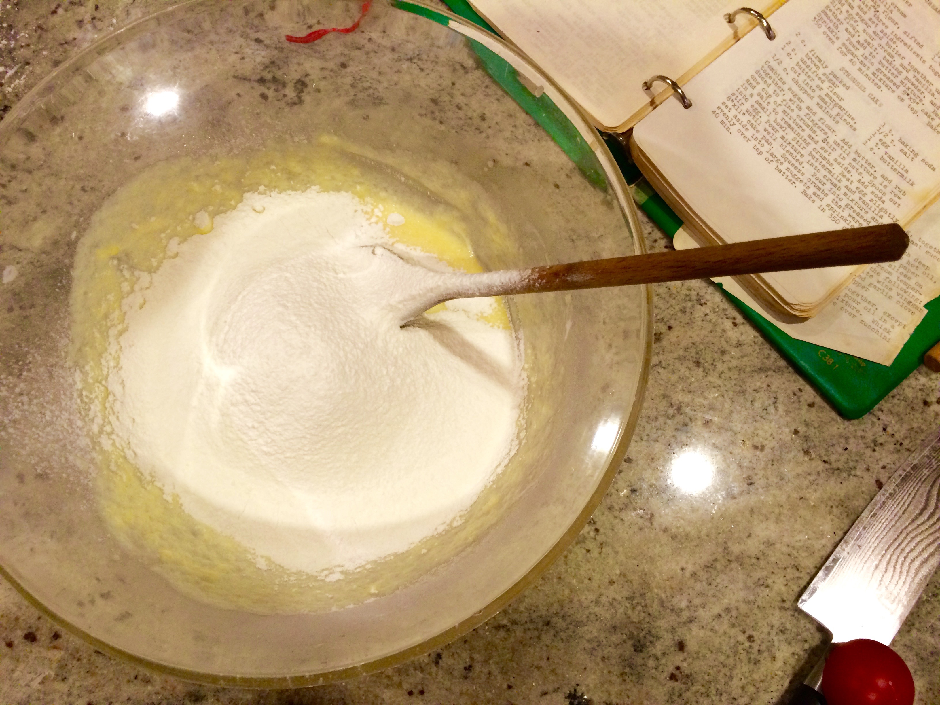 2 cups cake flour, sifted [Nonnie notes in a handwritten addendum that you could also use 1.5 cups of all purpose, if you, unlike me, haven’t been gifted an absurd amount of gratis flour]
