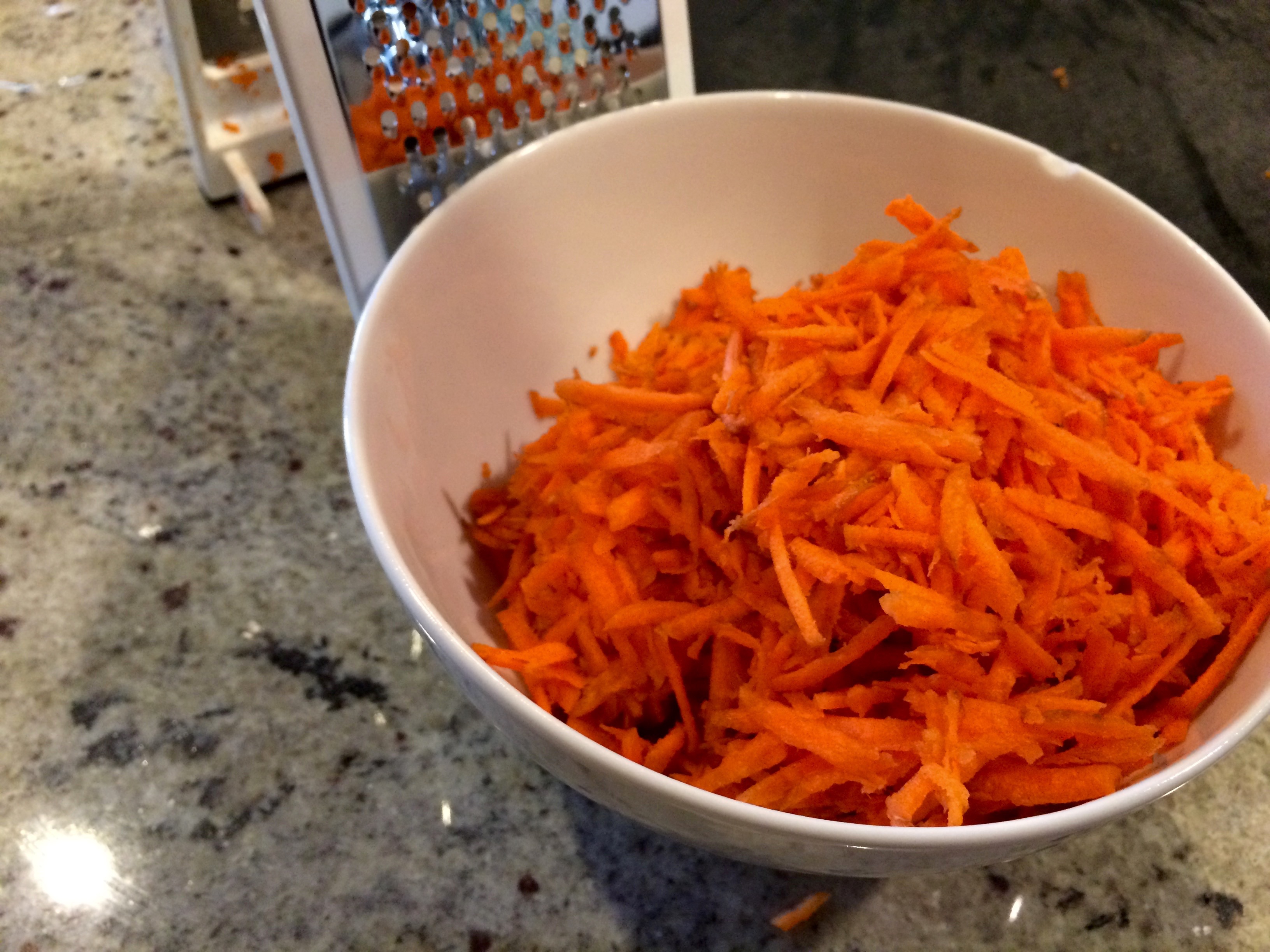 2 cups raw, grated carrots (about 8 carrots) [Have carrots grown tremendously in size since the ’80s? I only needed three]