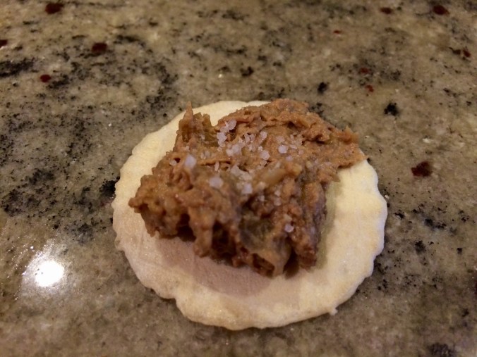 Heat oil in skillet. Add onions and sauté lightly. [I went until they were getting translucent-ish.] Add liver to onions and continue to sauté, stirring occasionally, until onions start to turn brown. [I’m not totally sure what Nonnie meant by this instruction — until they get brown with liver juice? Until they begin to caramelize? Either way, I did some research and found other recipes that recommend cooking until the livers are just barely pink inside, which is what I ended up doing. Liver is unappealing enough; you don’t want to eat undercooked liver.]