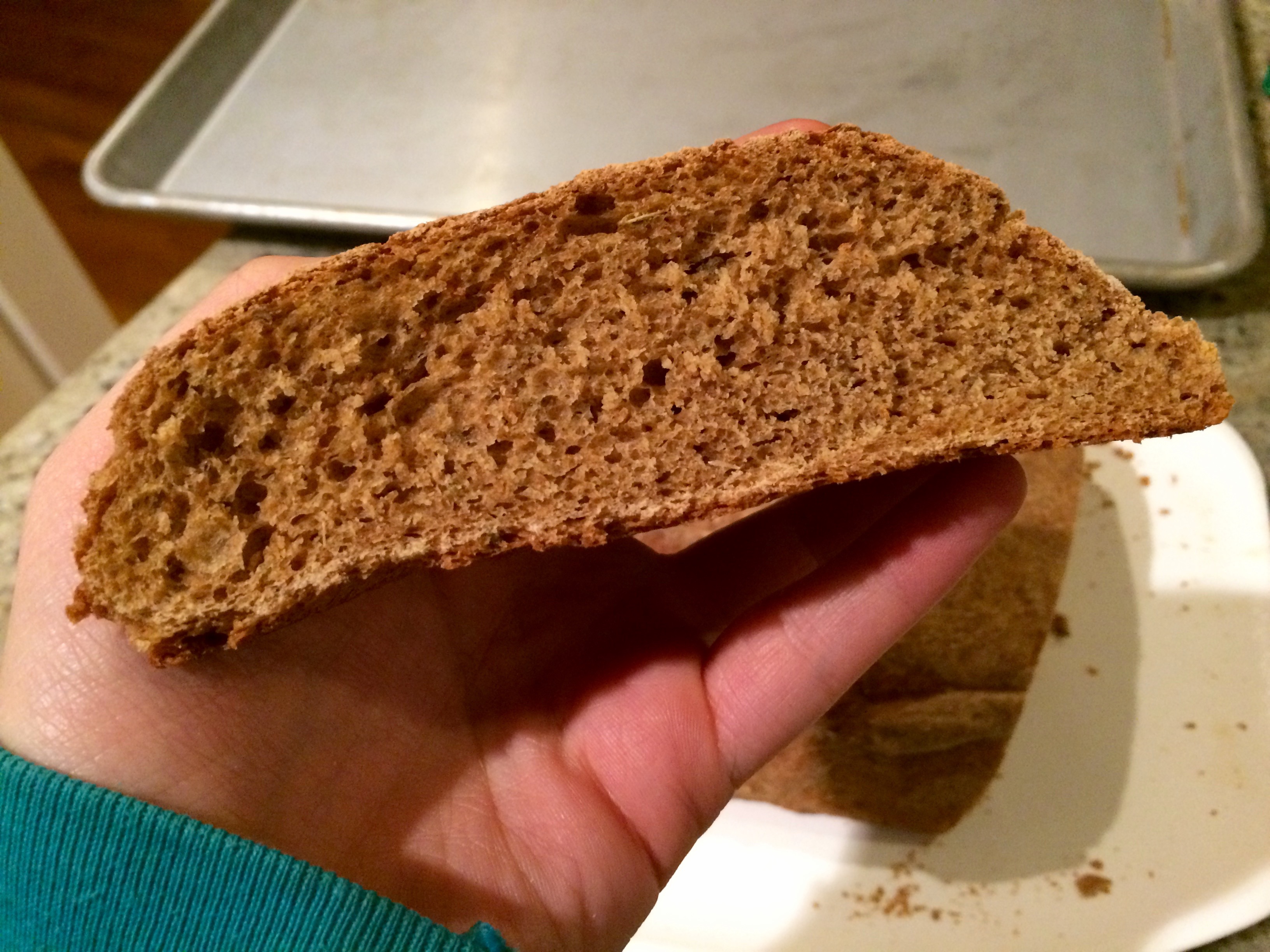 But I soldiered on, dutifully completing the recipe according to Nonnie’s instructions — and I was pleased to end up with two beautifully risen loaves of dense brown bread, crusty on the outside and soft within, assertively spiced but not oppressively so.