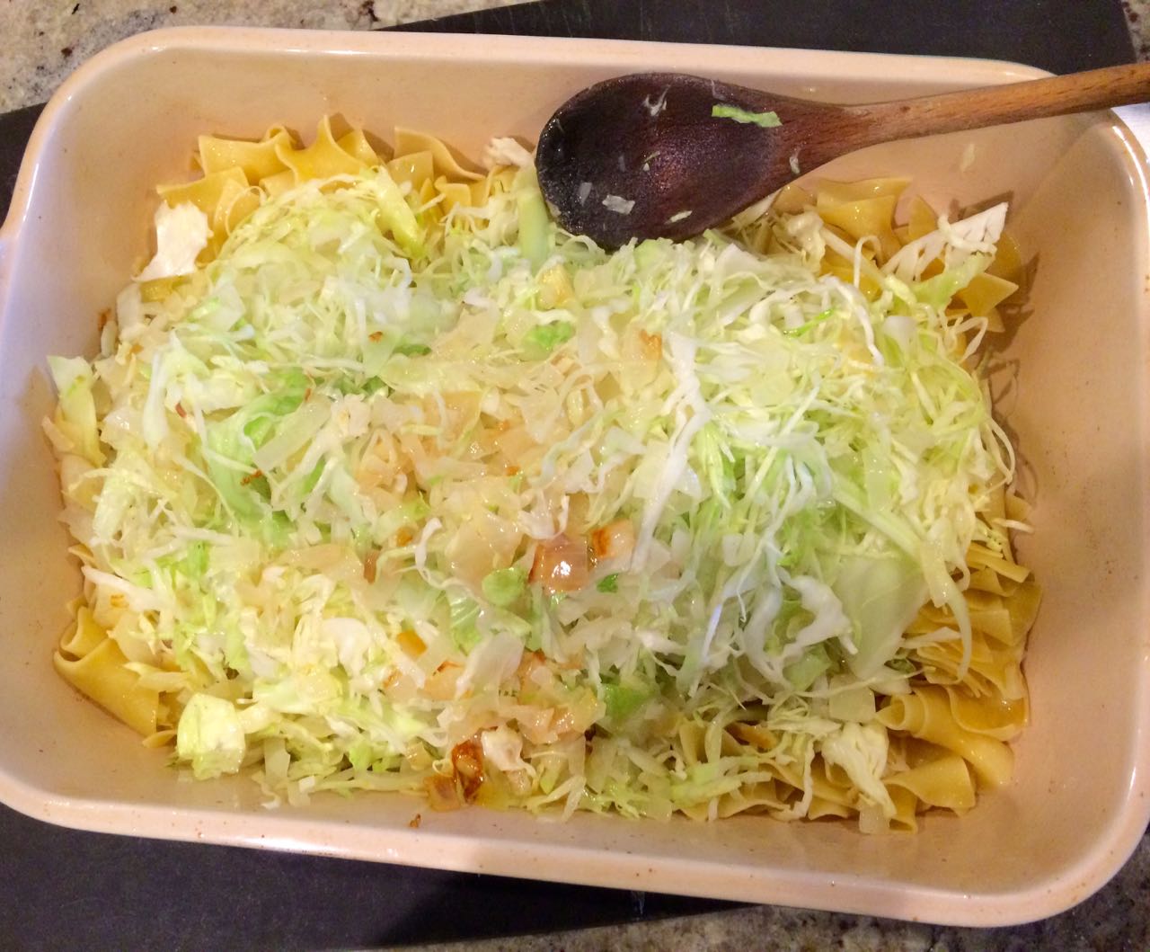Cabbage-Noodle Casserole; main text Nonnie’s, italicized asides my own