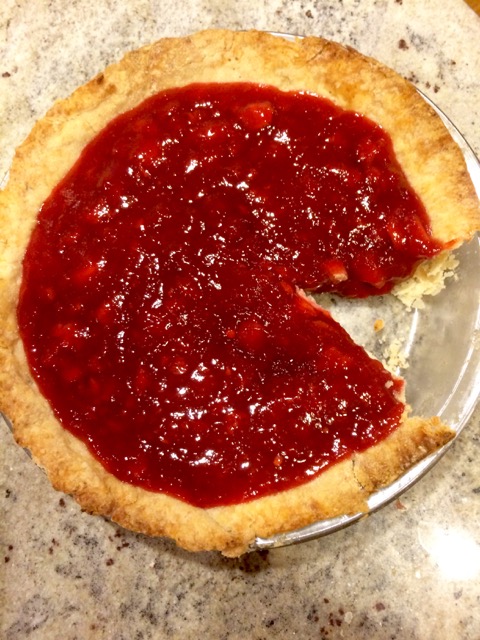 3-4 boxes fresh strawberries [I bought two quart-sized boxes and ended up using about three cups in this pie, which meant having berries leftover—which I’m certainly not complaining about]