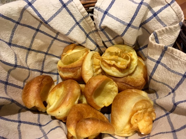 I don’t recall much about the food we ate along the way, with one major exception: after touring quaint, bucolic Amherst, we stopped at a charming little restaurant that was famous for its popovers. (Turns out it’s called Judie’s, and it’s still there.) I had never had a popover before; I’m pretty sure I didn’t even know what a popover was. But I fell in love as soon as I bit into my first one—still warm from the oven, perfectly golden brown, crisp on the outside with an interior that felt lighter than air. They were hollow inside, which made them easy to fill with other delicious things—but they tasted good enough on their own that I don’t think I even bothered taking the extra step.