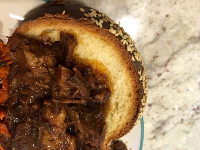 The verdict: I regret not having more and better pictures to show you of this miracle challah, because I promise it’s better than these photos make it look. Maybe a close-up of a slice soaked in delicious brisket juice will help: