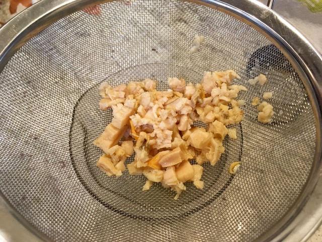 1 7.5 ounce can minced clams, drained [This instruction is actually missing the word “can,” but there’s no way Nonnie would have used fresh ones. She was not much of a shucker]