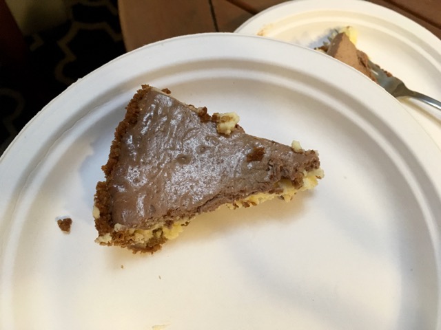 All of which is to say this: both the title and look of this dessert are unappetizing. “Chocolate cheese pie” sounds like a mistake, or a gross idiom I’d rather not try to define; when sliced, the pie looks not like this, but like a particularly heinous Pinterest fail.