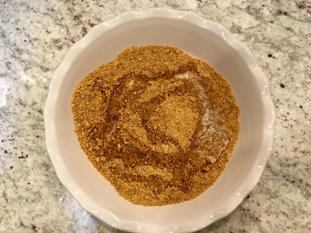 Graham Cracker Crust [This recipe is slightly different than the graham cracker crust recipe Nonnie uses for her cheesecake, maybe because she figured a springform pan is bigger than a standard pie plate. Don’t sweat the difference too much, though; both methods work]